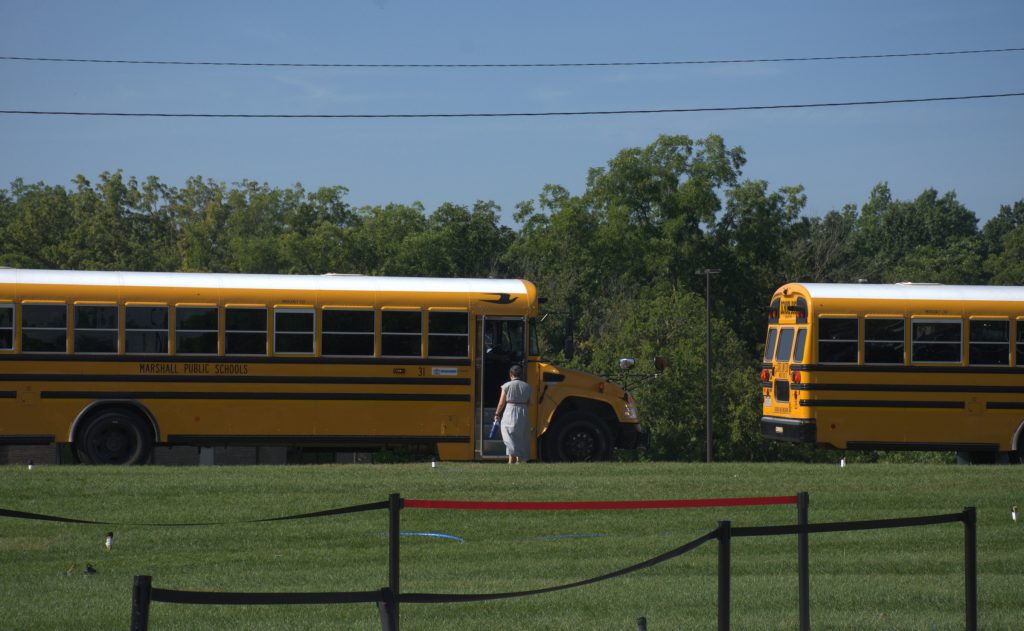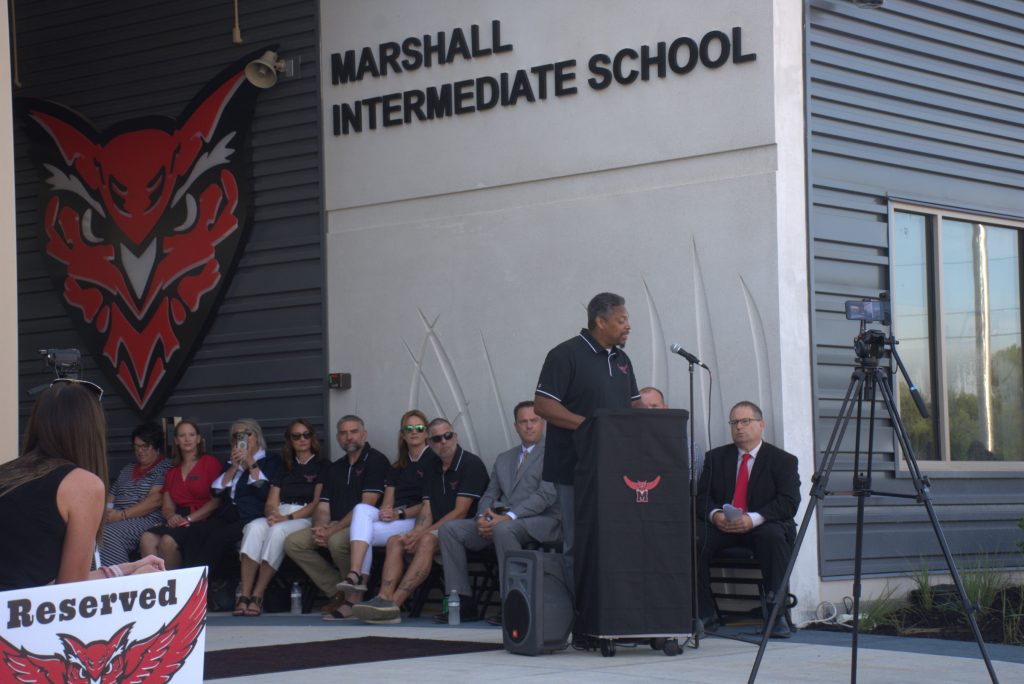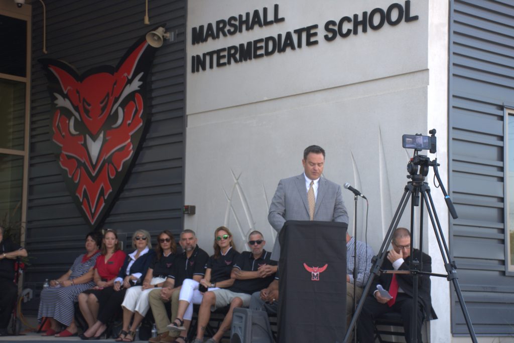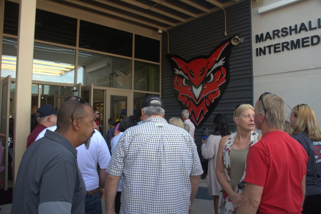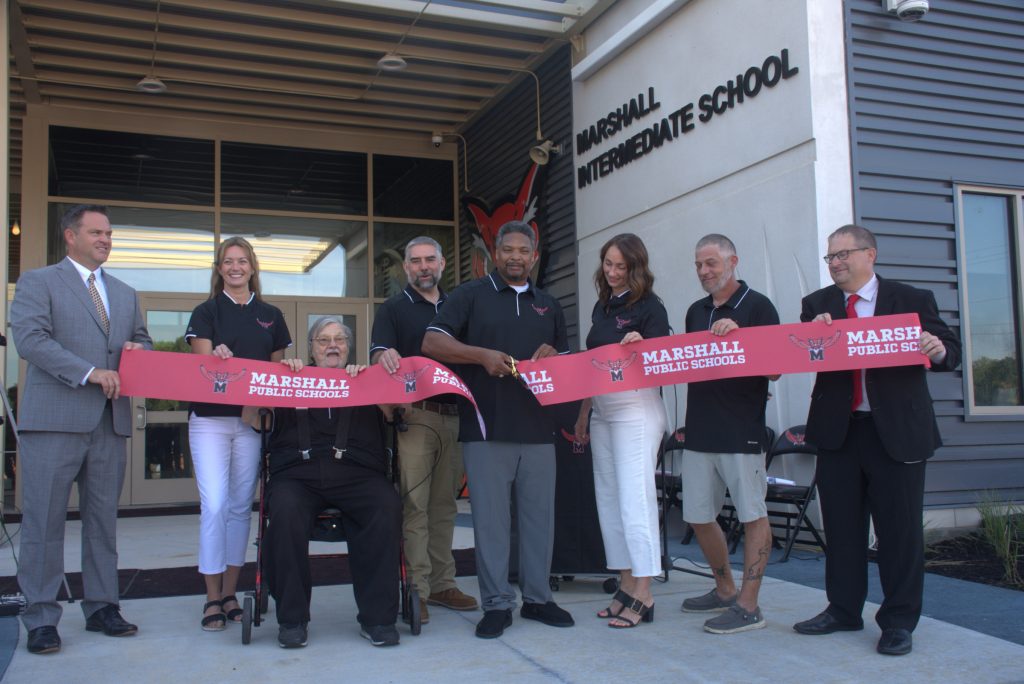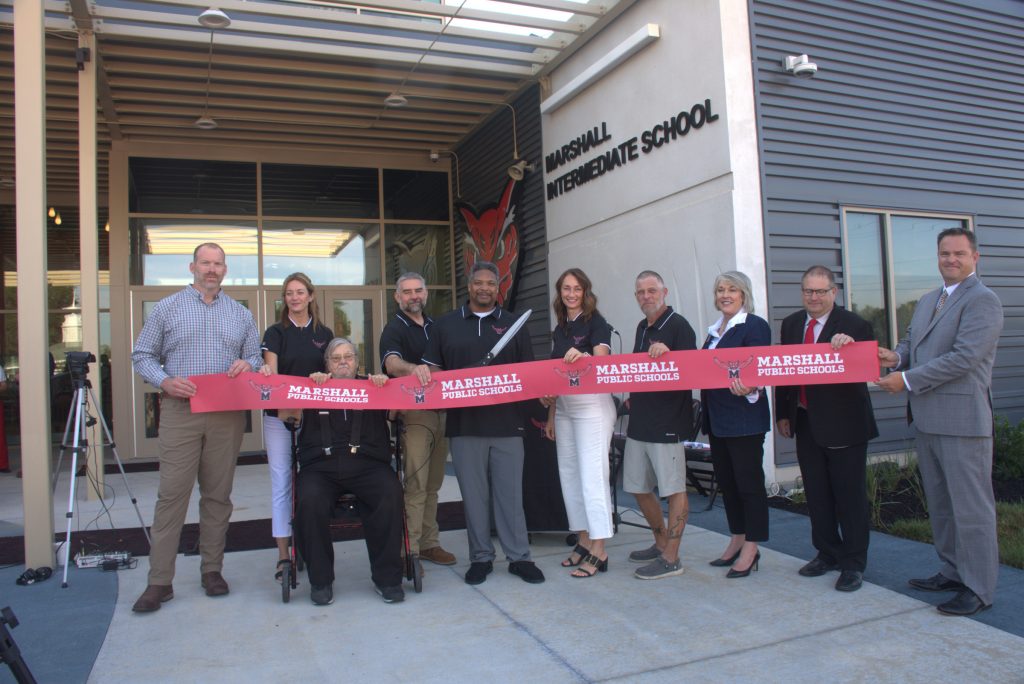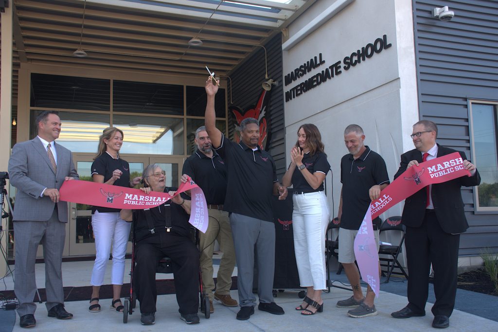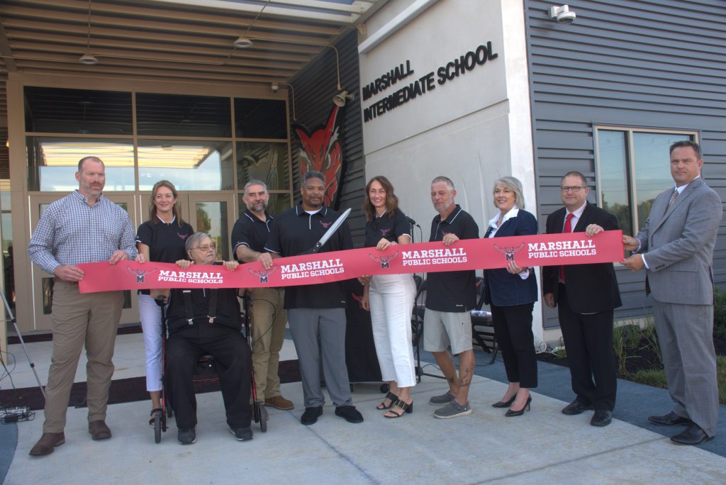 The Marshall School District welcomed the public to the celebratory ribbon-cutting ceremony for Marshall Intermediate School. Construction of the new school building, which is now home to grades 3-5, was completed this summer. The ceremony took place Thursday, Aug. 14. (Photos by Sarah Gray/Democrat-News)