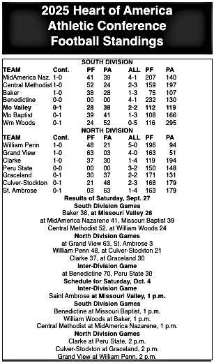 Home Sports Vikings look to finish first half of season with victory over St. Ambrose Vikings look to finish first half of season with victory over St. AmbroseOctober 3, 2025College, Sports by Hobby King/SPORTS EDITOR A week after the Missouri Valley College football team sprinted to a 20-0 lead in the first 2 minutes, 9 seconds… Login to continue reading Login Sign up for complimentary access Sign Up Now Close Tags# Football# Missouri Valley College Previous Post Clerk’s Office tests voting equipment for Special Election Featured Local Savings -