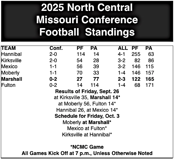 Home Sports Week 6: Owls try to end three-game skid, host Moberly Week 6: Owls try to end three-game skid, host MoberlyOctober 3, 2025High School, Sports by Hobby King/SPORTS EDITOR Friday, Oct. 3, high school football teams around the state will meet in games that will mark two-thirds of the regular… Login to continue reading Login Sign up for complimentary access Sign Up Now Close Tags# Football# Marshall# Santa Fe# Slater# Sweet Springs Previous Post Saline County Historical Society receives 2nd historic quilt Next Post BMS walks for breast cancer awareness Featured Local Savings -